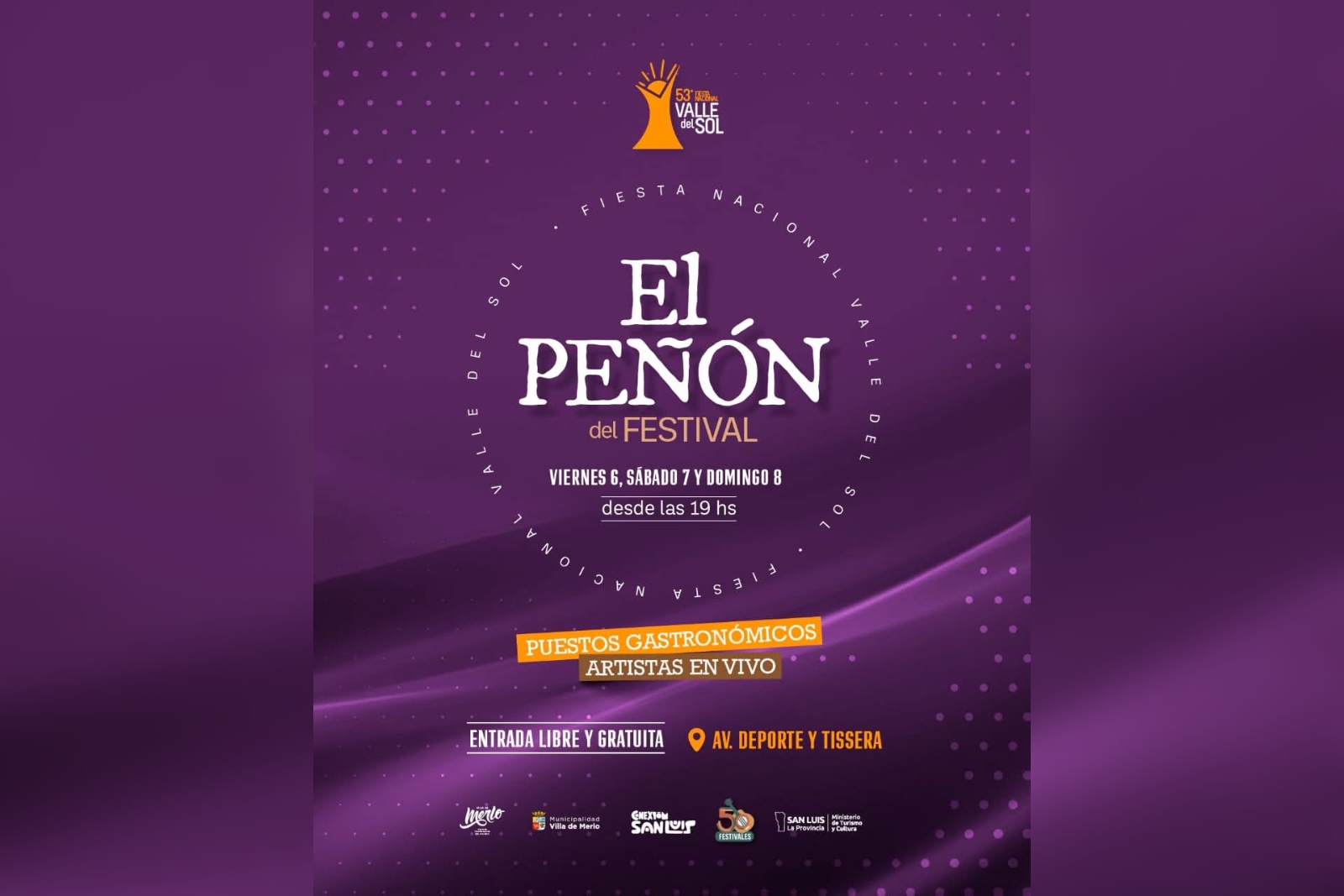 Coincidiendo con la 53ª edición de la Fiesta Nacional Valle del Sol, Merlo sumará este año ‘El Peñón del Festival’, una iniciativa que busca ampliar la oferta recreativa durante las noches del evento. La actividad tendrá lugar en Avenida del Deporte y Tissera, del 6 al 8 de febrero, desde las 19:00, donde se montará un sector especialmente acondicionado con puestos gastronómicos, emprendedores locales y música en vivo, ofreciendo un espacio de paseo y disfrute al aire libre.