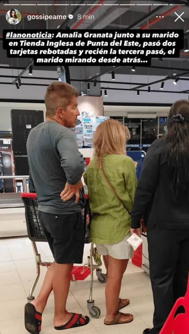 En esta ocasión, el posteo se limitó a reproducir la imagen y el mensaje tal como llegó. “Amalia Granata junto a su marido en Tienda Inglesa de Punta del Este”, decía la descripción, acompañada por el relato del inconveniente con las tarjetas. No hubo interpretaciones ni comentarios adicionales por parte de la periodista.